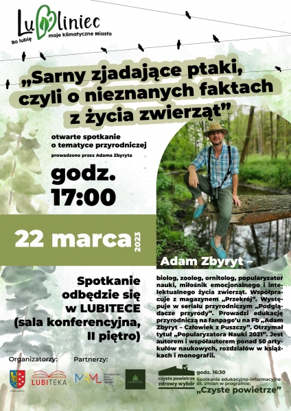 Zapraszamy na otwarte spotkanie o tematyce przyrodniczej prowadzone przez Adama Zbyryta
