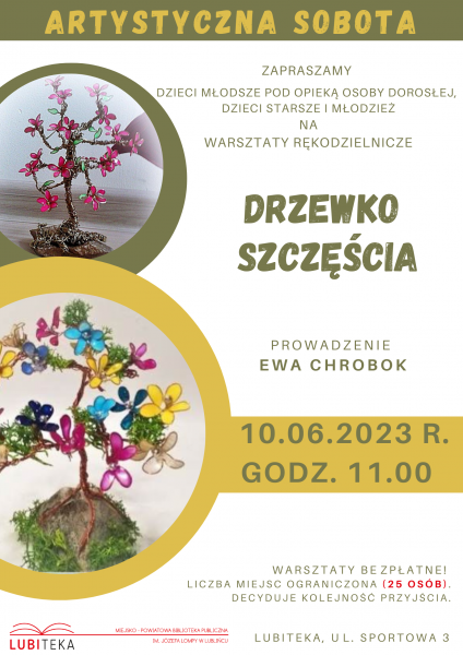 2023-06-10 Godz. 11.00, DRZEWKO SZCZĘŚCIA - WARSZTATY RĘKODZIELNICZE