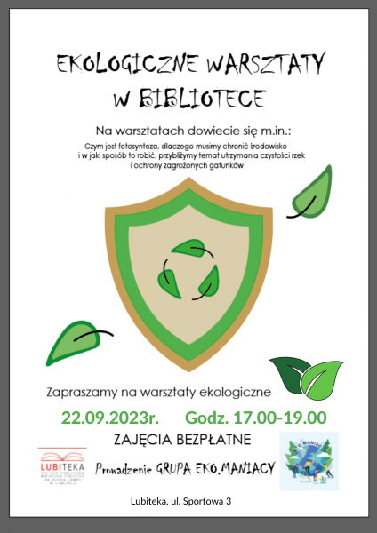 2023-09-22 GODZ. 17.00-19.00, EKOLOGICZNE WARSZTATY W BIBLIOTECE