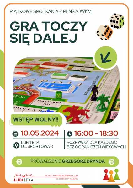Miejsko-Powiatowa Biblioteka Publiczna im. J. Lompy w Lublińcu zaprasza na spotkanie GRA TOCZY SIĘ DALEJ