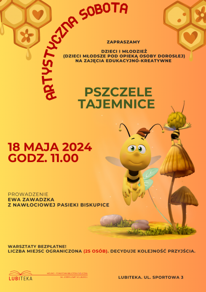 Z okazji Światowego Dnia Pszczół, który przypada 20 maja, serdecznie zapraszamy dzieci i młodzież (dzieci młodsze pod opieką osoby dorosłej) na niezwykłe zajęcia edukacyjno-kreatywne "Pszczele Tajemnice"!