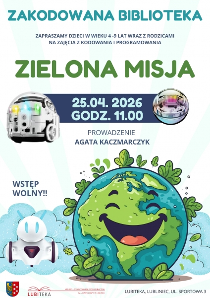 #DzieńZiemi #ZielonaMisja #ZakodowanaBiblioteka #Lubiteka #EkoDzieci #ProgramowanieDlaDzieci #Robotyka #Photon #Ozobot #GeniBot #DbamyOPlanetę #EdukacjaPrzyszłości #RodzinneWarsztaty
