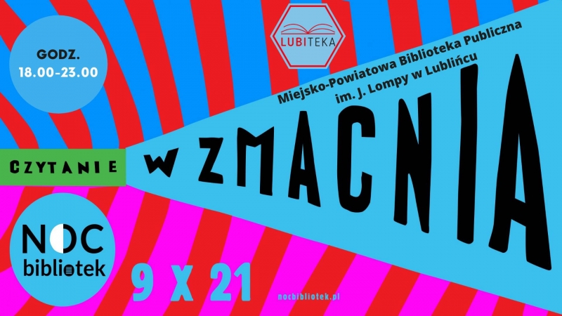 Miejsko-Powiatowa Biblioteka Publiczna im. J. Lompy w Lublińcu serdecznie zaprasza na OGÓLNOPOLSKĄ NOC BIBLIOTEK pod hasłem „Czytanie wzmacnia”.
