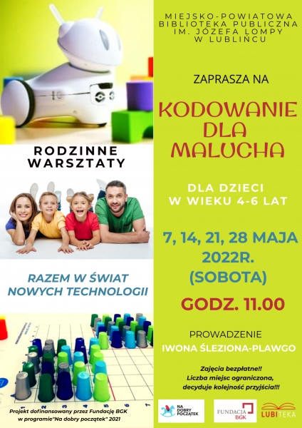 2022-05-28 GODZ. 11.00, RODZINNIE WARSZTATY KODOWANIE DLA MALUCHA DLA DZIE