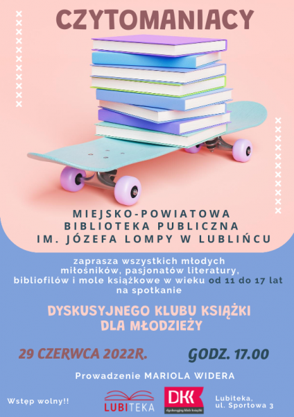 2022-06-29 GODZ. 17.00, CZYTOMANIACY - DYSKUSYJNY KLUB KSIĄŻKI DLA MŁODZI