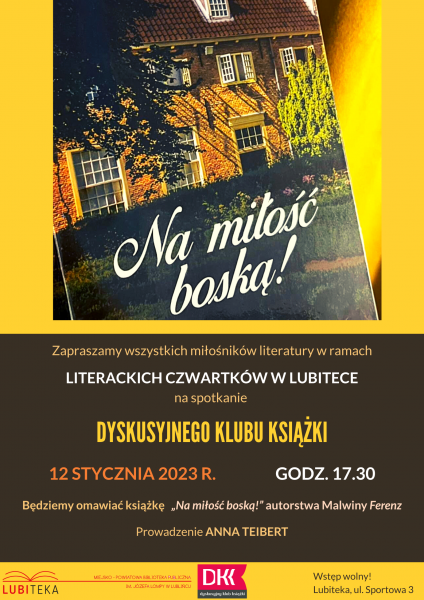 2023-01-12 Godz. 17.30, SPOTKANIE DYSKUSYJNEGO KLUBU KSIĄŻKI DLA DOROSŁYCH