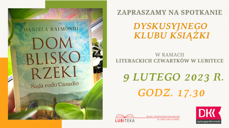 Zapraszamy na lutowe spotkanie Dyskusyjnego Klubu Książki, tym razem wokół książki „Dom blisko rzeki’’ Danieli Raimondi.