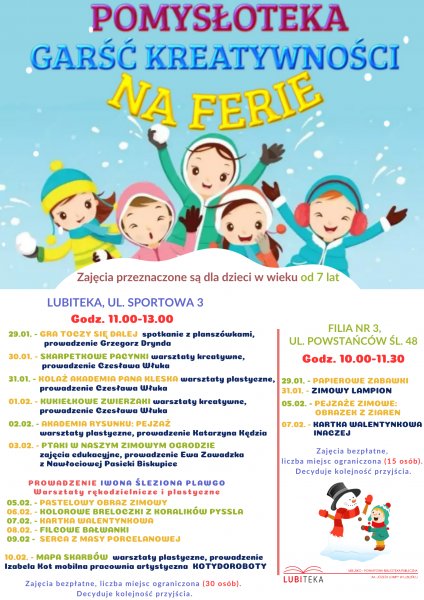 2024-02-07 GODZ. 10.00-11.30, 11.00-13.00, POMYSŁOTEKA - GARŚĆ KREATYWNOŚCI NA FERIE