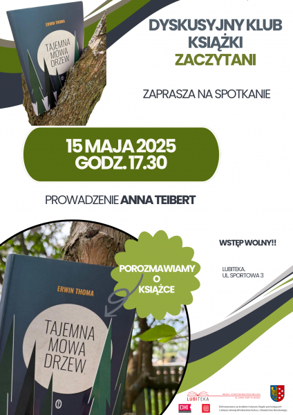 Już 15 maja 2025 (czwartek) o godz. 17:30 spotykamy się w Lubitece (ul. Sportowa 3) na wyjątkowym wydarzeniu Dyskusyjnego Klubu Książki ZACZYTANI!