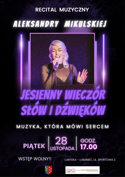 #Lubliniec #Lubliteka #Koncert #Recital #AleksandraMikulska #JesiennyWieczór #MuzykaNaŻywo #Kultura #Biblioteka #WstępWolny #MuzykaKtóraMówiSercem